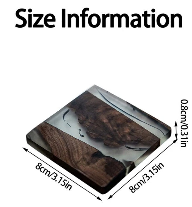 Wood Epoxy Coasters, Square Wood Drink Coasters, Walnut Wood Coasters, Handmade Wooden Coasters